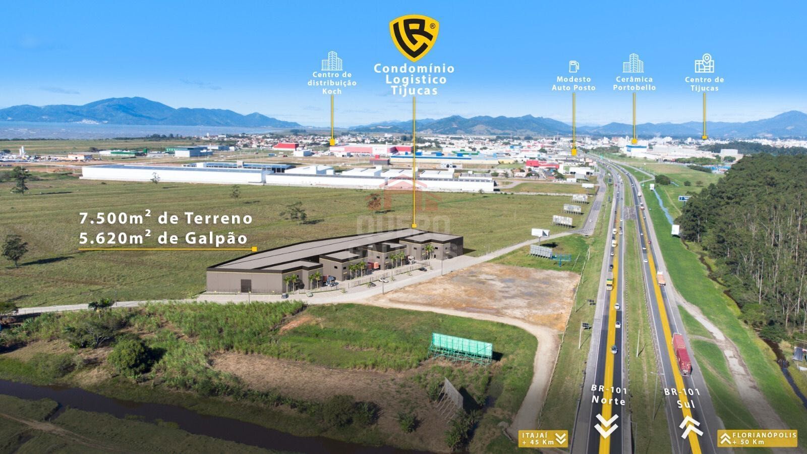 Alugo excelentes galpões com 6.000 m² em localização estratégica, de frente para a BR-101 em Tijucas/SC, garantindo visibilidade absurda e logística privilegiada!